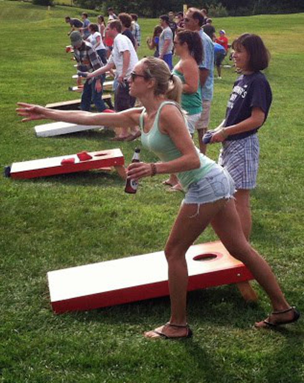 Toss bean bag 25 feet onto a board and try to get it into a hole. Sounds easy? You'd be surprised.