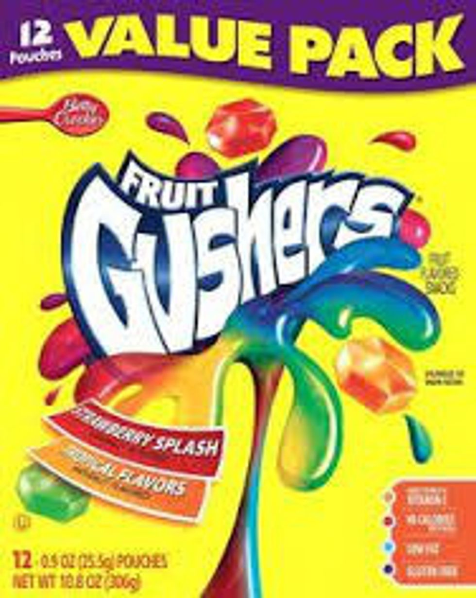 Gushers are the sweets that when you take a bite your whole mouth floods with fruit goodness. Don't stuff your whole face with them or it will make a serious mess.