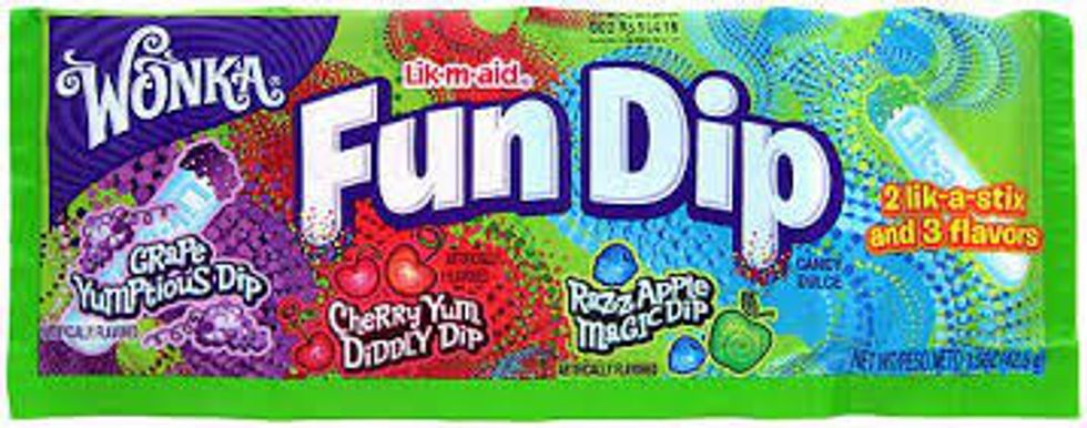 Fun dip never gets old. Who doesn't love colored sugar? Some people love it so much they even eat the stick!
