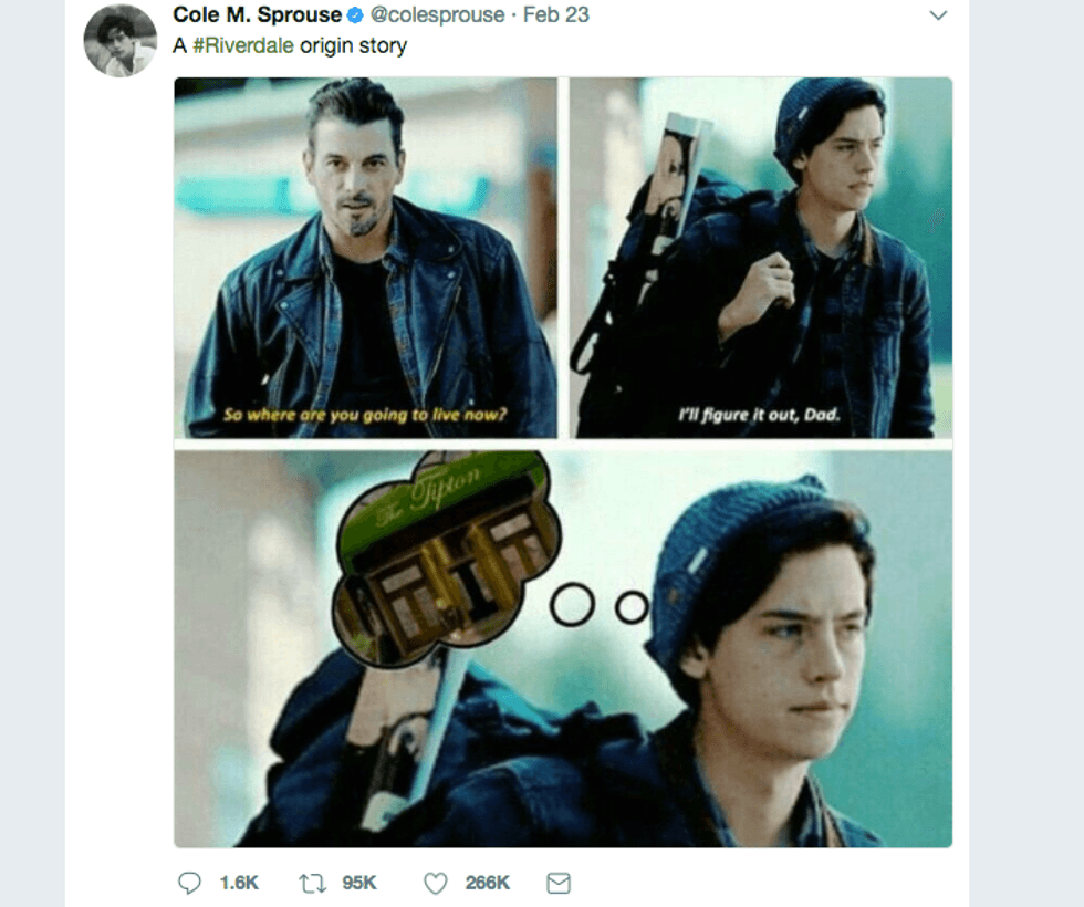 You probably recognize him as the young 5-year-old from the film “Big Daddy”. Or perhaps you remember when he stole your heart as the brainier half, from the hit show “The Suite Life of Zack and Cody”. But maybe now you identify him as “Jughead” from the recent hit show “Riverdale”. Before starring in “Riverdale”, Cole Sprouse was lurking in the shadows. At the time, both Cole and his twin brother ,Dylan Sprouse, decided to take a break from acting and acquire a degree from New York University. Despite the fact that Cole did not take up any acting jobs, he continued to keep his fans happy with his interesting Twitter feed. As fans read more of Sprouse’s tweets, it became obvious that he had grown to be exceptionally well-rounded, extraordinarily witty and downright hilarious. Therefore, in honor of Cole Sprouse’s 25th birthday, here are just 25 of his best Tweets.