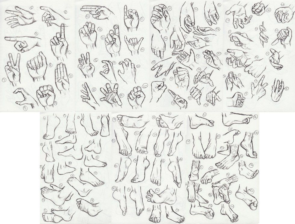 Drawing hands for me isn't nearly as bad as having to draw feet, but I used to struggle with hands as well. There's just something about them that give us artist's anxiety, probably because every person in the world can tell what a good hand will look at since they've seen hands probably their whole lives. Same with feet. And the other thing that comes to drawing hands and feet is getting both hands and both feet to look the same. Just like with the eye, it's hard to make sure that they both look the same, so that one isn't too much bigger or smaller than the other. When creating hands and feet, there will always be a lot of erase marks, especially when first trying to draw them. It just ends up taking a lot of practice to draw hands and feet.