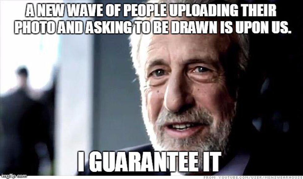 Uhm, what? I know it's pretty cool if someone can draw you, but this is almost my biggest pet peeve when I'm drawing. I could draw you, but the thing is that I probably won't because portraits are harder than probably whatever else I'm drawing at the moment. Artist's can also be temperamental, at least me, so sometimes I can have a really easy time drawing a tree but the next day I can't. So maybe when you ask us to draw you, we won't be able to at the moment because we're focused on drawing something we can do very well at the moment instead of something that is harder for us to do. It's weird, but I know it happens, at least to me. But being asked to draw someone can be a bit annoying, and honestly I don't get why it annoys me. Eh.