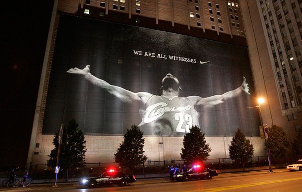 As we noted before, LeBron didn’t come into the league in a quiet way. While being loud and proud shouldn’t necessarily be an indictment, many would argue that LeBron took it to another level. Other than the fact that he donned Michael Jordan’s number coming into the league, LeBron also got a huge back tattoo that reads “CHOSEN1” and was now dubbing himself King James. Along with giving himself this not-so humble nickname, LeBron adopted a popular catchphrase, “We are all witnesses.” Nike launched a huge campaign around this phrase and LeBron, putting up huge billboards around Cleveland that had huge pictures of The King.