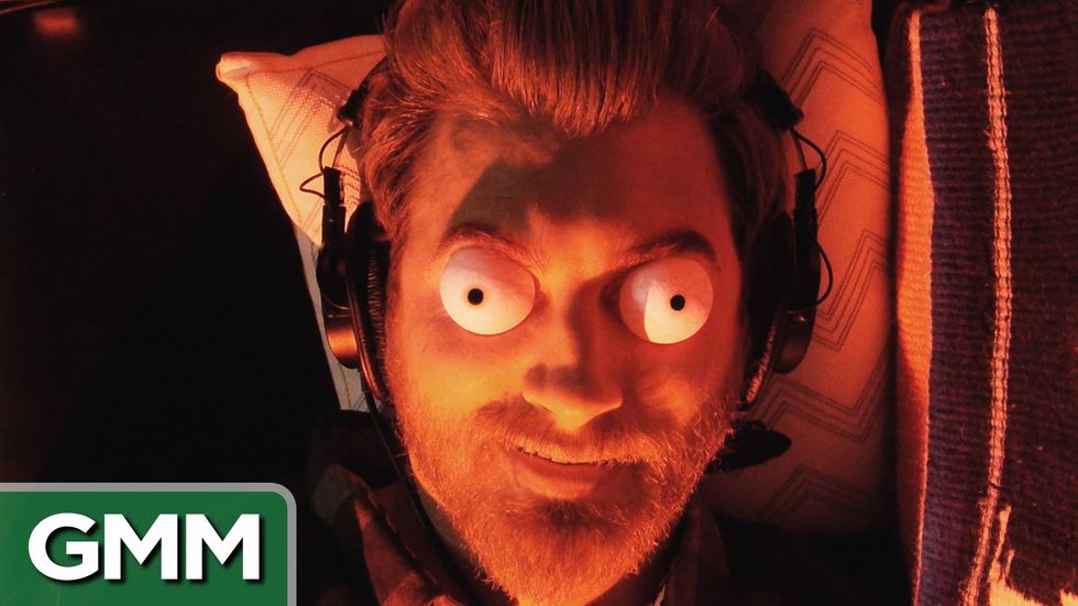 On this episode, Rhett and Link test each other to see who has ESP. In doing so, they try and guess what image is being sent to them with the mind of the other while being blinded and only able to hear white noise through headphones. Link ends up having ESP, while Rhett does not. The funniest part: Rhett's reaction as he swears Link did something wrong when "sending" the image.