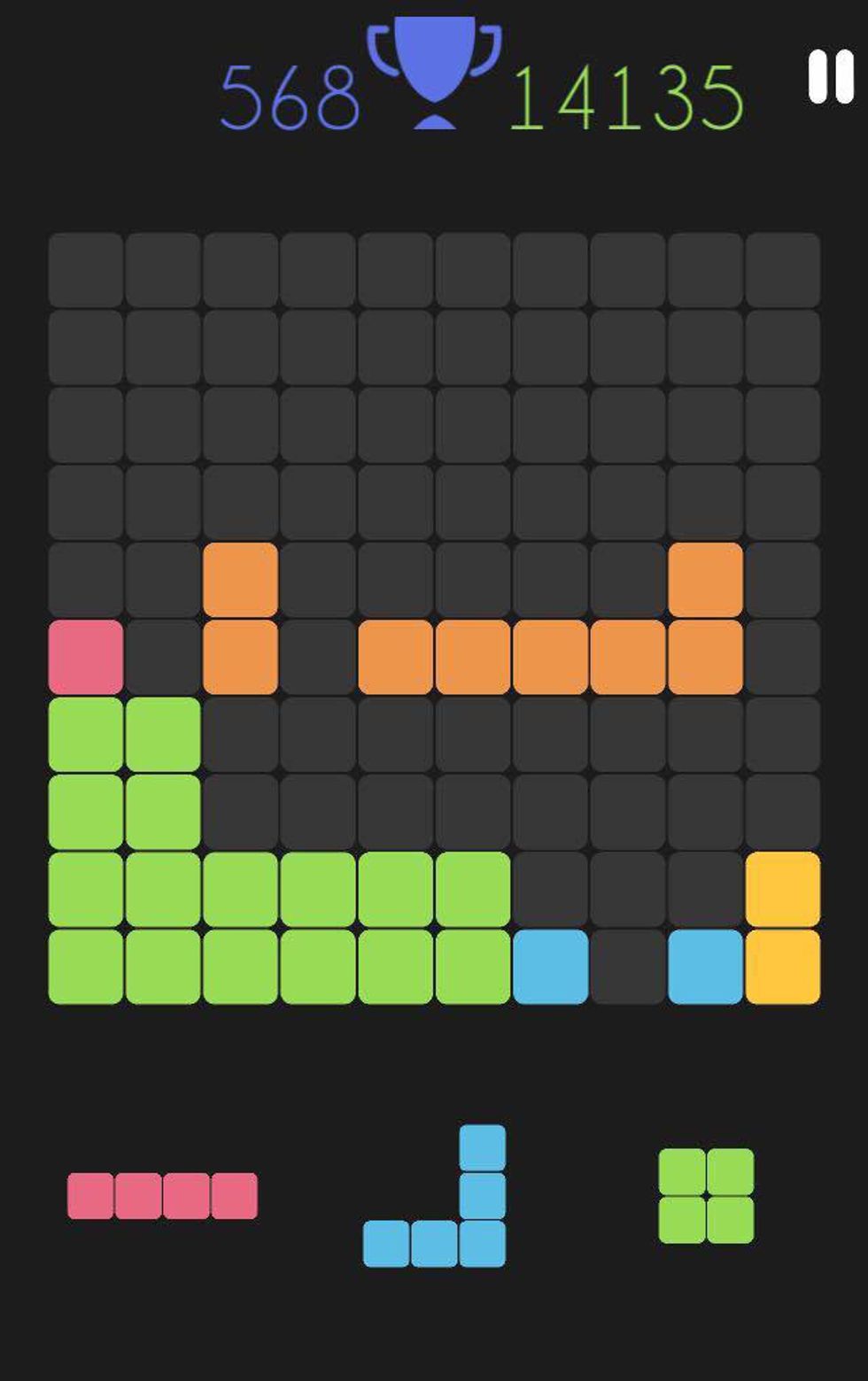 This game was one that my sisters showed to me. It’s basically like Tetris but revamped. This is another game that I got quickly obsessed with and would also use as a way to relax and destress. The object of the game is to fill the row of ten and once that is done, the row disappears. However, if you fill up the board until there is no more room left for new pieces, you lose. I like this game because it’s like Tetris, but without the stress of falling pieces and the necessity to make quick decisions. You can go at your own pace and pick up where you left off anytime.