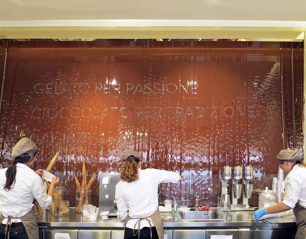 There's even a chocolate waterfall wall constantly running, and you'll feel like you're in Willy Wonka's chocolate factory.