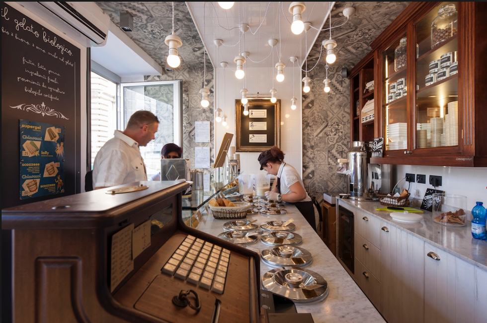 Home of the gelato roses, and located on via del Corso 44/46r.