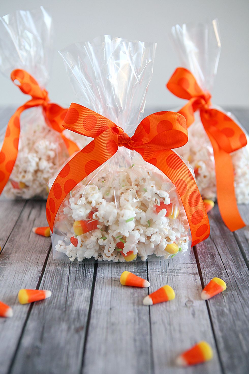 Obviously, candy is a must have, but my favorite last minute treat is candy corn and popcorn mixed together for a late night snack. And if you're feeling extra and you have a little more time on your hands here's my favorite white chocolate candy corn popcorn. Remember, calories don't exist on holidays. Only your sweet tooth!