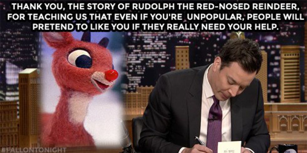 Rudolph the Red Nosed Reindeer/saved the commercial season/now we ignore him completely/our prejudices aren't unmade just because/you managed to get our boss paid.