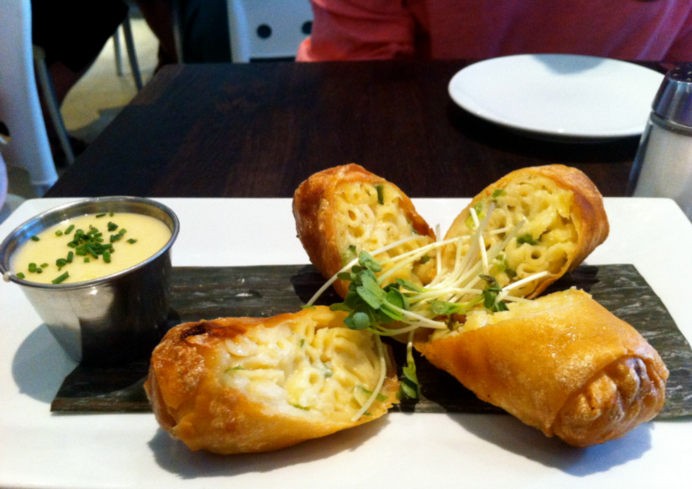 Cafeteria will leave you with nothing but happiness. While you can just order one type of mac-and-cheese, I highly recommend getting the Mac-Attack Tasting of All Three. With this, you get three bowls of three different kinds of mouth-watering mac-and-cheese flavors. With one a mix of fontina and cheddar cheeses, another topped with bacon, and the other baked in truffle oil, it is extremely difficult to pick a favorite. But who cares; what’s better than having three different types of mac-and-cheese at your fingertips? If your answer was nothing, you’re wrong. Because along with the Mac-Attack, Cafeteria has something very unique: a masterpiece called Mac-and-Cheese Spring Rolls. These spring rolls are stuffed with mac-and-cheese and served with a side of Gouda dipping sauce. If you’re craving a lot of different styles of mac-and-cheese (like me, 24/7), Cafeteria is definitely the right choice for you.