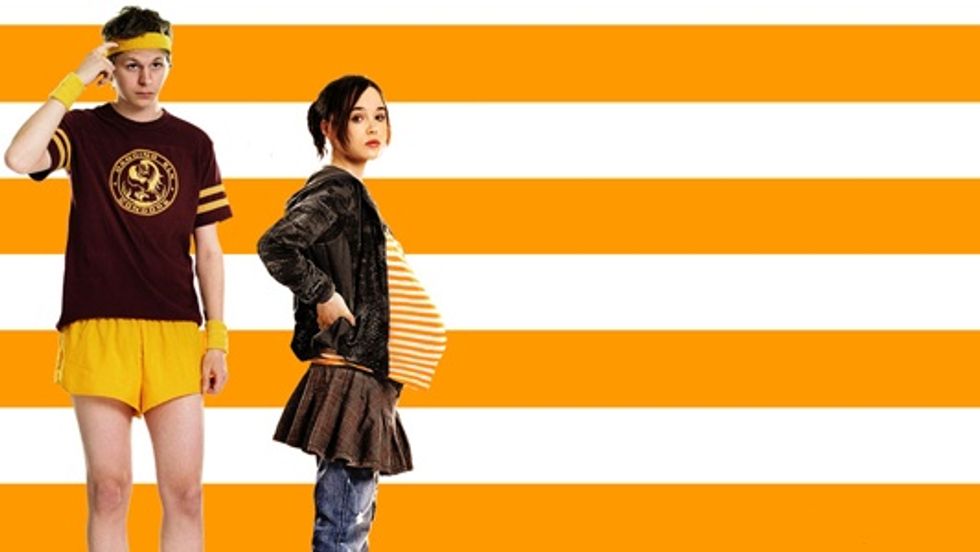Played expertly by Ellen Page, look at the picture above she is the one with the huge belly, Juno's quick-witted humor and observations fuels the charm and heartache that comes along with this movie. In light of getting pregnant by Paulie Bleeker, her close boyfriend but no so boyfriend, Juno decides to keep the baby and put it up for adoption, sticking with her decision like glue.