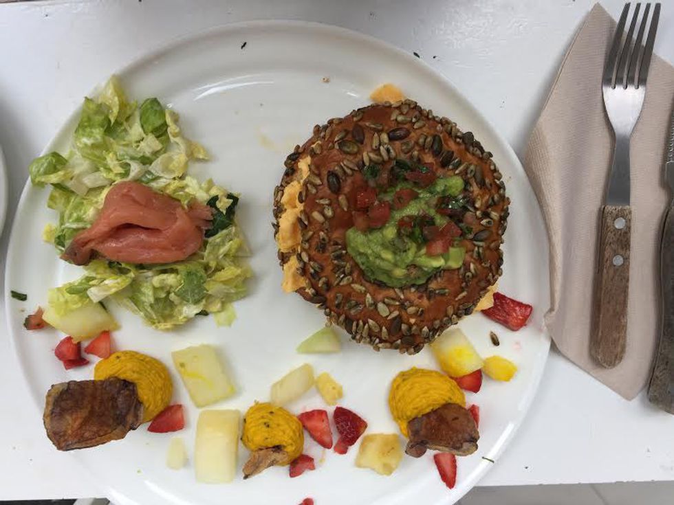We landed on a Friday morning and were able to check into our hostel right away, and our next stop, obviously, was brunch! After four days of carb overload in Italy, we were looking for some healthier options, and Barcelona delivered. Our travel guide in the hostel recommended Flax + Kale, a hip restaurant near Las Ramblas (the touristy area where the open air market, La Boqueria, can be found). I had an amazing roasted avocado and carrot salad with a fresh pressed chai and turmeric juice, and my friend had a veggie burger with a berry smoothie. We also enjoyed some kale chips that had some sort of mustard sauce on top. We shared our table with another couple of American girls who were traveling together for spring break, and informed me, much to my disappointment, that the rowboats we wanted to take out in Parc la Ciutadella were still closed for the season. The following day we brunched at one of Barcelona’s best kept secrets called Brunch and Cake. We sat outside with a blanket and were able to people watch along a semi busy street in a local neighborhood. I had an amazing scrambled egg bagel sandwich and a pink beetroot latte while my friend enjoyed a Mexican style chicken and tortilla dish. On our last morning on Sunday, we took the opportunity to explore another district of Barcelona near the Picasso Museum just off the Metro stop Jaume I. We had discovered Satan's on our walking tour the day before (don't be alarmed by the name), and our tour guide recommended it for truly excellent coffee. We arrived mid morning and took a window seat view of the uber quiet square/courtyard it is located in and reviewed our plan for the day. I got to try bread soldiers for the first time while my friend chose to be quite the plain Jane and had some toast and jam! Don’t miss your opportunity to brunch outside in this beautiful city; you will surely not be disappointed wherever you go (including you Starbucks lovers) because the city has exotic vibes and attracts international travelers that makes the opportunity for style watching perfect.