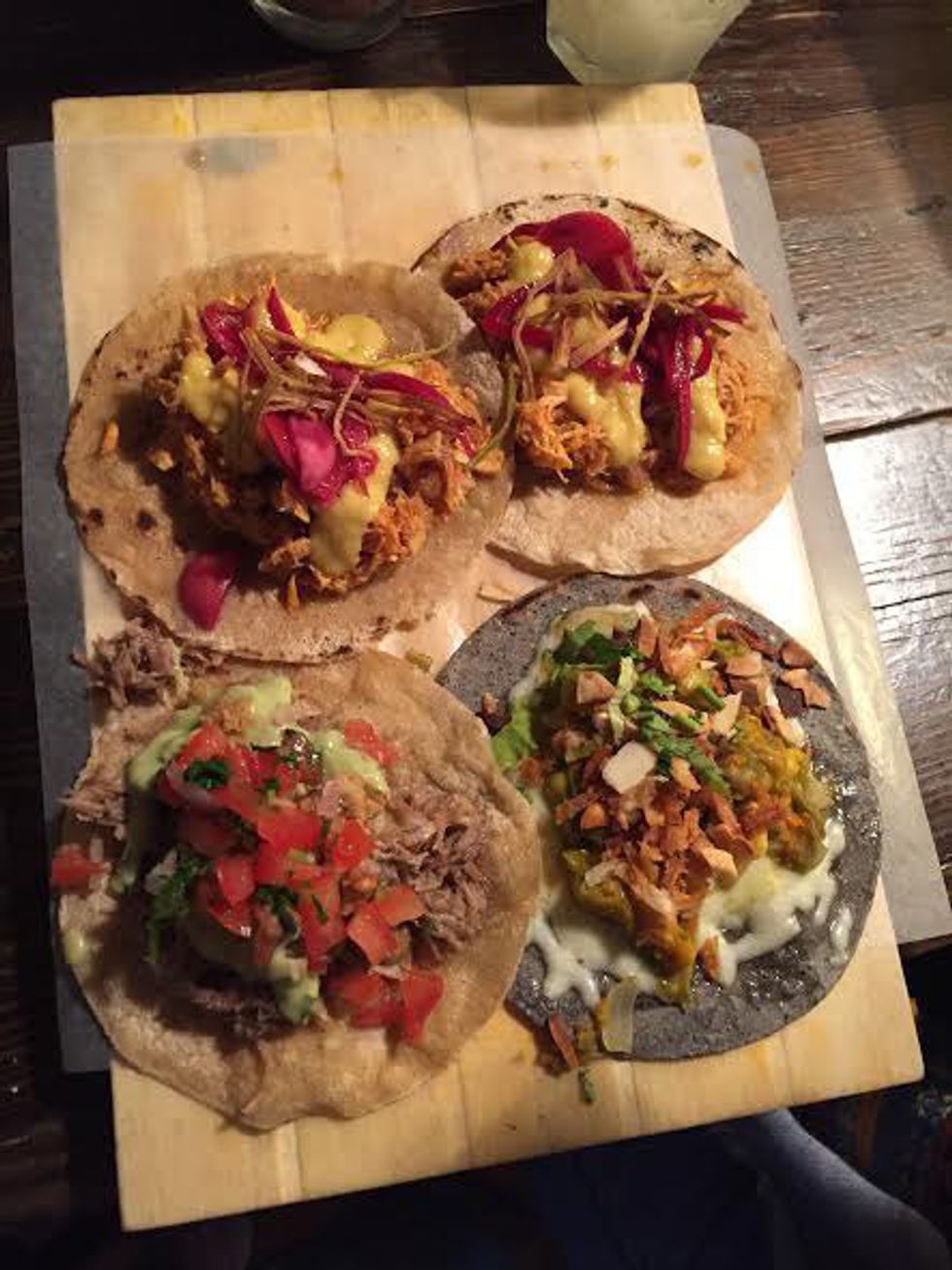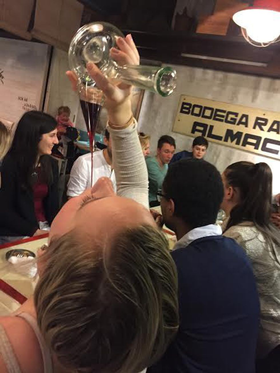 On our last night, Sunday evening, we joined a Tapas Experience and Flamenco tour that involved lots of eating, drinking, and pure fun. We were in a decent sized group of English-speaking travelers and made rounds to four different tapas bars and restaurants. At each stop we were able to enjoy at least one plate of tapas and our choice of red or white wine or a beer. Our favorite tapas place was our third stop at a restaurant quite far away from the tourist areas where we got to enjoy six different tapas and wine. At this point, my friend and I had met other American students from North Dakota and were enjoying our tour with them. At the next place, we were required to drink sangria (not a traditional Spanish drink, our tour guide said because it is made with cheap wine) out of a parone, which was a glass vessel used to drink hygienically with a large group of people. We were allowed to practice with water before we used our napkins as bibs and tried with actual sangria. I felt like I was training for the sangria Olympics and it was most definitely a highlight of our night as we watched some more reserved folks ask for plastic cups to enjoy their drinks. After the fourth restaurant, we stopped at a local bar and took shots before heading to a flamenco performance at a small place in Plaza Real. Flamenco is not actually traditional to the area of Barcelona, but nonetheless, there are flamenco dancers practicing their art in the city, and I insisted my friend had to see a performance. She was in awe of the woman who moved passionately across the stage, and the live music was equally as incredible. Sometimes tours are not worth the money spent, but we felt that we got to try authentic tapas dishes at restaurants located out of the tourist destinations for a reasonable price of 30 euro, which included the flamenco show. We also got to meet people from America, Australia, Turkey, and Ireland. It was a night filled with new friends and experiences, and it was the perfect way to close a wonderful weekend of adventuring in Spain. At the end of the show, we convinced our newfound friends to come back to the area near our hostel, where we knew of an excellent authentic taco and margarita joint that we planned on visiting again. If you are ever in Barcelona, make sure you go to Pikio Tacos for incredible street tacos, loaded nachos, and strong margaritas.
