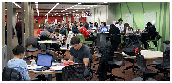 New building, open 24 hours, café inside, and located in the center of campus makes for a popular study area!