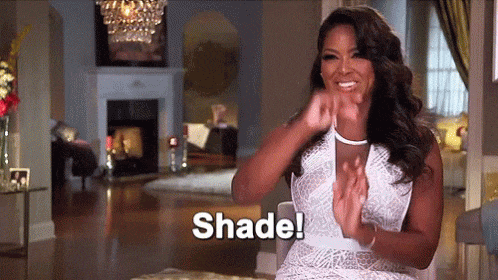 Because all these women always argue you will pick up a thing or two on how to answer someone when they are being "so nasty and so rude" when speaking to you. The come backs you pick up and how quickly to say them, there's a word for that: SHADE! Yes honey, SHADE! Even if you are in a heated argument with someone and you are stating facts it's all about how you say it and how quickly. You need to be fast and sassy!