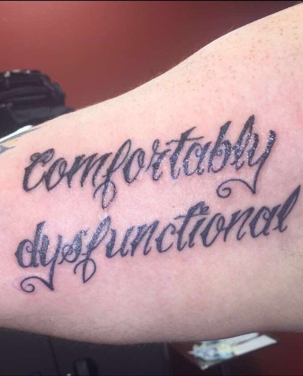 Others get tattoos that have meaning behind them. I believe all tattoos have some type of meaning, or significance, even if it's just, "I got this because it's cool." It could be deeper than that, too. Shown above is my version of the tattoo I got matching with my brother. They're in the same location, which for me, is significant enough, but these words are song lyrics. They allow me to kind of show off my taste in music, how music affects my life, and to wear it on my skin every single day. Constantly I am applying music to my life and finding ways to relate to it or make simple connections. This is one that probably means the most to me and I love being able to see it all the time, especially in its typewriter font.