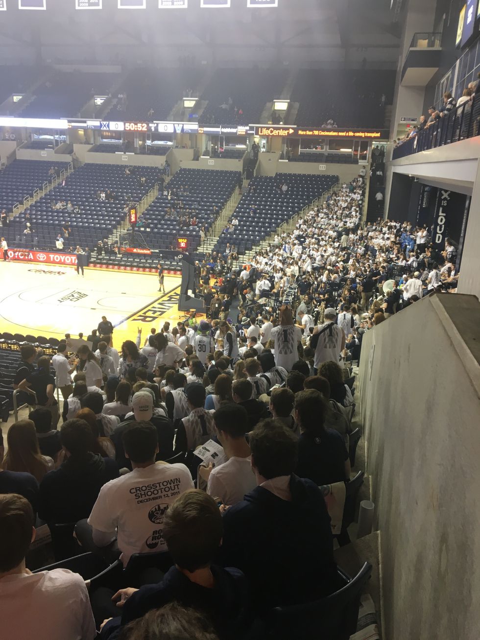 The student section sometimes spills into the regular seating because of how popular the games are. Even the upper seats that barely get light have people in them. If you don't go to the games and you're a student, many times you get weird looks and questions asking if you're sick or feeling alright. Sorry mom and dad, but studying can happen later!