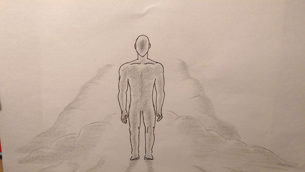 Sometimes I like just attempting to draw people. Obviously, the drawing above isn't perfect, plus I decided to give a more alien theme to the figure. The smoke/fog behind the being gives an even more mysterious look. The drawing as a whole was influenced by the movie "Close Encounters of the Third Kind", specifically the final scene.