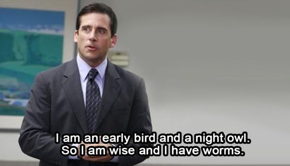 5. “I am an early bird and a night owl. So I am wise and have worms.” – Michael Scott