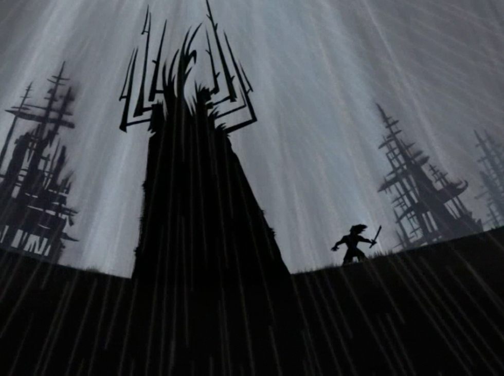 How do you defeat darkness? With the light of course. After Aku trains a dark ninja to defeat Samurai Jack, the evil ninja sets forth to find the samurai and defeat him, resulting in an epic battle of beautiful aesthetics and excellent music. Samurai Jack disguises himself in white to blend in with the light of day where as the dark ninja is masked in black, trained to be a warrior in the darkness of the shadow. The result of the samurai cloaked in white battling a ninja in black is an incredibly memorable fighting sequence.