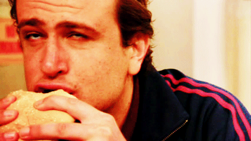 “That first bite—oh, what heaven that first bite is. The bun, like a sesame freckled breast of an angel, resting gently on the ketchup and mustard below, flavors mingling in a seductive pas de deux. And then…a pickle! The most playful little pickle! Then a slice of tomato, a leaf of lettuce and a…a patty of ground beef so exquisite, swirling in your mouth, breaking apart, and combining again in a fugue of sweets and savor so delightful. This is no mere sandwich of grilled meat and toasted bread, this is God, speaking to us in food.” – Marshall Eriksen in How I Met Your Mother