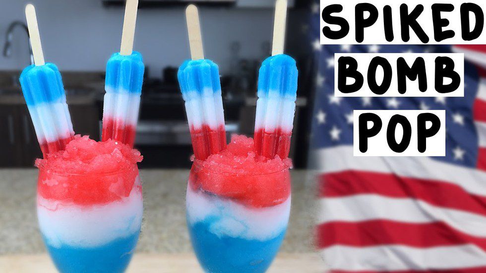 Channel your inner child with this revamped version of the classic Bomb Pop. Although kids can't drink this one, they can eat the leftover popsicles! Watch the full tutorial here.
