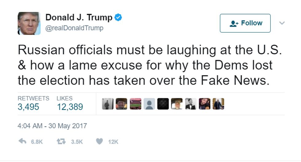 Although we may be rolling our eyes and smashing in our own faces with the audacity of this last tweet, the fact is it's freaking scary.Trump has started this "Fake News" machine the same as Putin has done in Russia with his propaganda machines and it's working on his supporters.