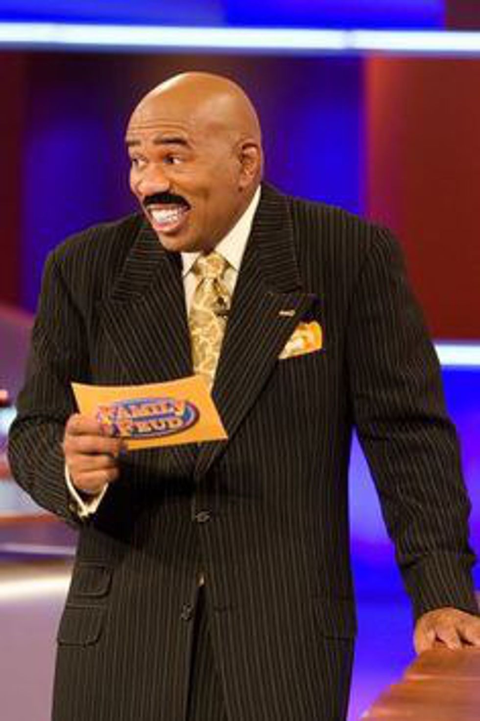 Steve Harvey, in my opinion, is the funniest guy on TV. One may think that hosting Family Feud wouldn't allow him to express his creativity, however, Steve finds a way to make each episode hilarious and enjoyable. From making fun of people for horrible and dumb answers and his amazing improv ability, Steve always can brighten your day with his comedy.