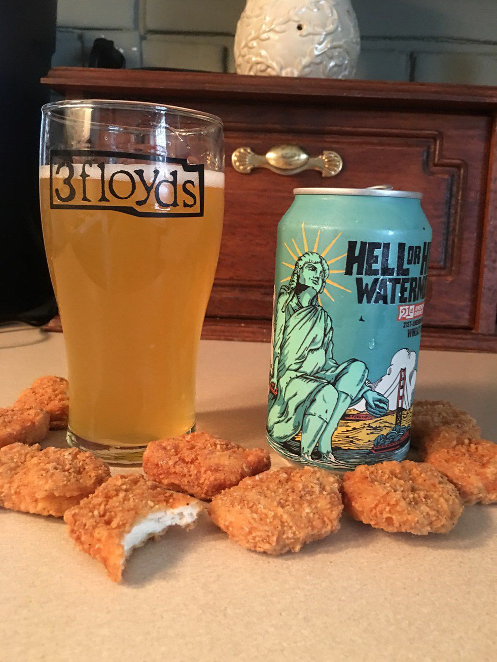 Maybe fruity beer isn’t your thing. If not, I don’t understand you but I have you covered just the same. This high-quality lager is very deep, but when you just need something tasty to help those good old nuggets go down all of its complexities are easily brushed aside and actually coalesce quite gracefully into a unified flavor profile. The hop forwardness of this lager lends it a very musky pine needle bite that will dissipate with your first mouthful of sweet, savory bird chunks. If you take your nugs hiking or live in the forest, this one’s for you. The finish is all crisp malt sweetness and white bread, so if you time your sips and bites correctly it’s almost like eating a chicken sandwich!