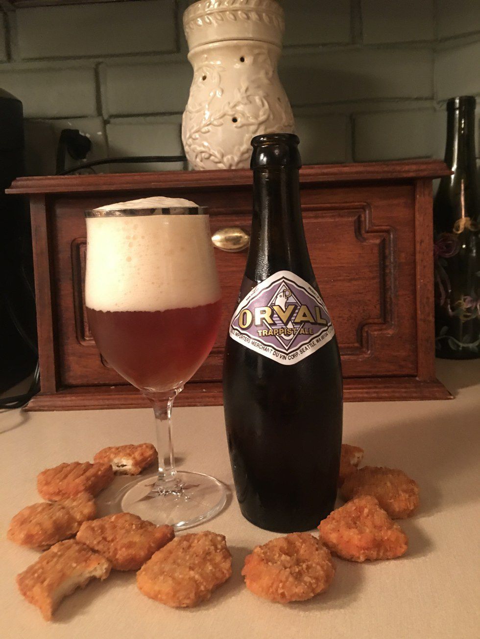 Sometimes finding the perfect beer to pair with your sacred chicken nuggets means reaching out to a higher power. He may not have known it at the time, but master brewer Pappenheimer was divinely inspired to create the most beatific nugget partner of all time when he concocted the recipe for Orval in a restored Belgian monastery in 1931. Today it remains the sole product of one of only ten authentic Trappist breweries operating in Belgium. What better way to consecrate your nuggins than with a beer brewed by monks? Its airy malt and tannic, hard-to-pin-down fruit flavor gives way to a faint bitterness and lingering dryness that impeccably compliments steamy white meat. Its mildly floral, musty aroma perfectly accentuates nugget breading and it retains its billowy head long enough for you to give proper thanks for the nuggos you are about to receive. Chicken nuggets and Orval are, perhaps literally, a match made in heaven. Can I get an Amen?