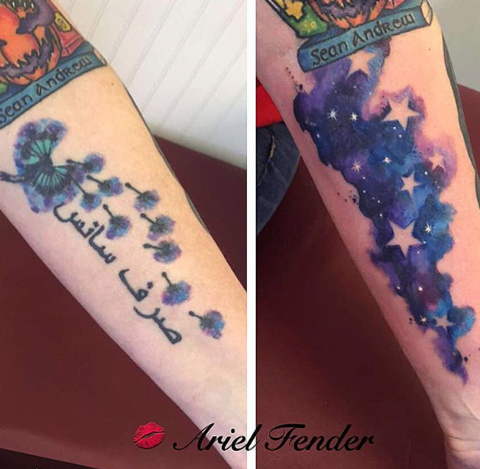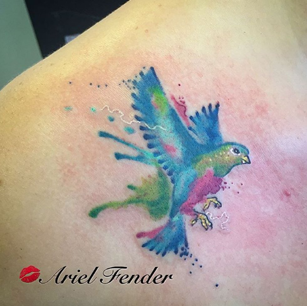 Ariel Fender, the artist at Linda's, is an expert in watercolor and cover-ups. With the popularity of watercolor on the rise, Ariel's work has shined.