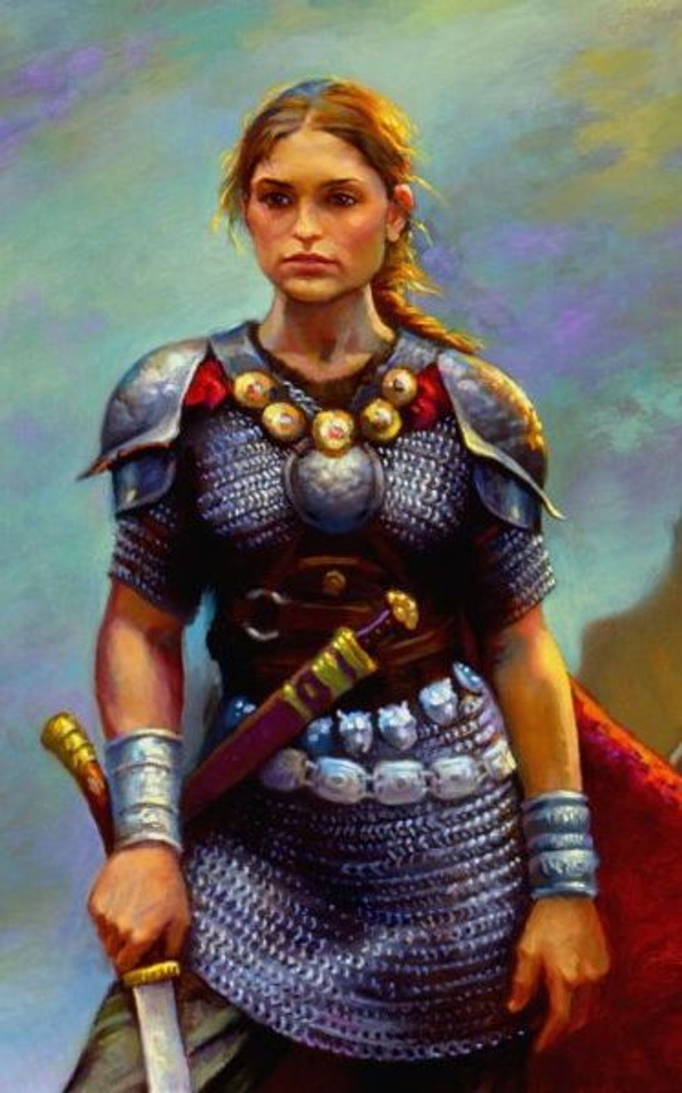 Known as the warrior princess of Deheubarth in Wales and married to Gruffydd ap Rhys, Prince of Deheubarth. Gwenllian's "patriotic revolt" and subsequent death in the battle at Kidwelly Castle contributed to the Great Revolt of 1136. She is often depicted fighting side by side with her husband, with a sword in hand or riding a chariot much like Boudicca.