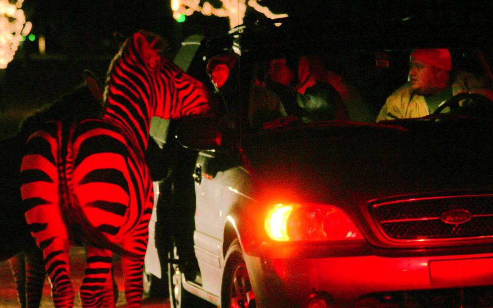 Spartanburg's Hollywild Animal Park makes a big show of Christmas lights every year like so may others, but that's not the best part. When you enter the park you can buy a bag of bread, and animals like zebras and buffalo will come up to your car and you can feed them. When you reach the end of the trail, you can get out and feed more enclosed animals. They also offer snacks, hot chocolate, and apple cider.