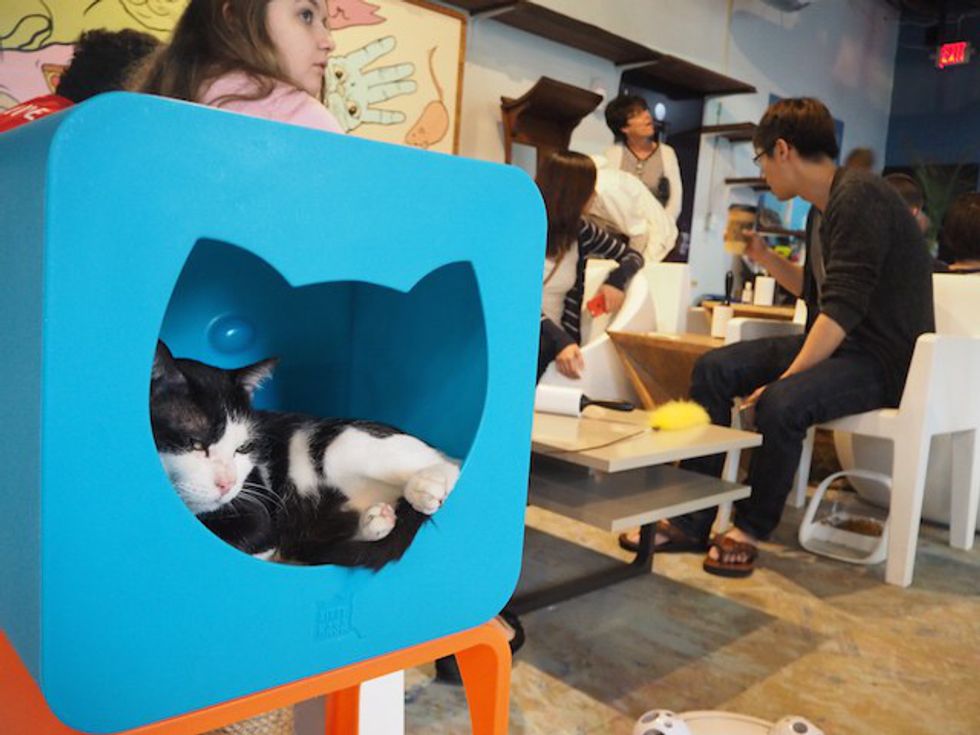 To begin, I freaking love the Blue Cat Café. I mean, my allergies despise cats, but that doesn't stop me from taking Benadryl, bringing tissues, and stopping by the Cat Café at least twice a month. What I genuinely like about this coffee shop is its efforts towards giving cats the opportunity to be adopted. The cafe can hold 25 cats and always seems to be nearing cat capacity. I love their mission and their fluffy counterparts that are so friendly to humans. In addition, their food menu is completely vegan— which I confess is quite delicious. If you have the means to adopt a furry four-legged friend, I'd strongly consider starting your search here!