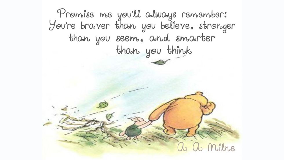 Trust Winnie the Pooh to always say something positive and heartwarming. This makes me think of the scene from The Help when the nanny tells the little girl to never forget that she is kind, smart, and important.
