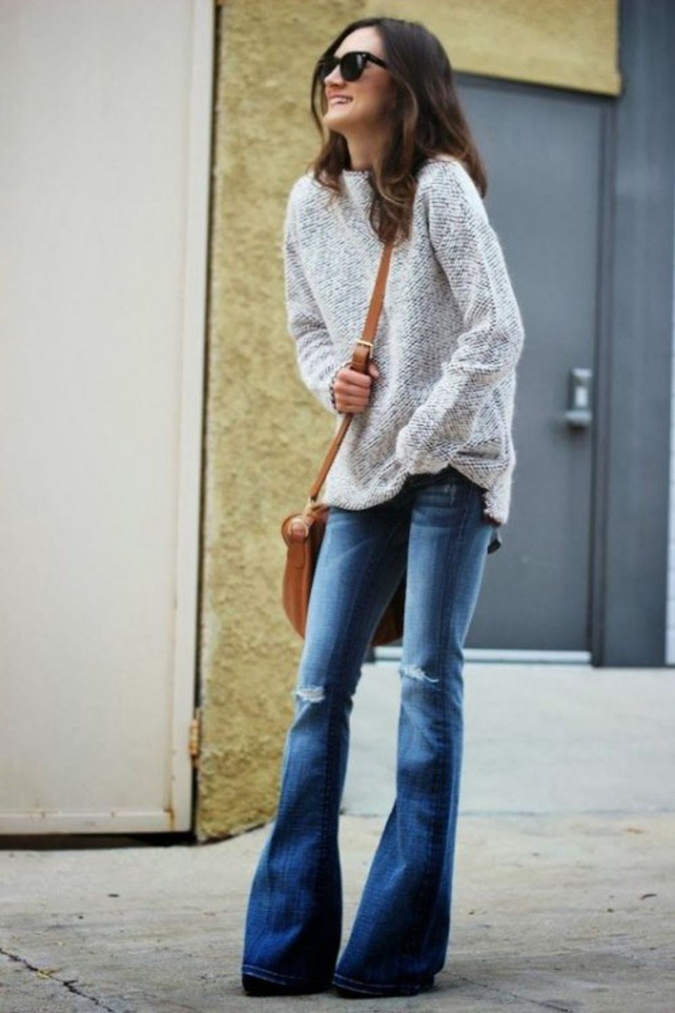 The 70s were a big trend on the runways for Fall/Winter 2015. Along with the 70s comes flared jeans. Wear these with a crisp button down, a chunky sweater, or a fur or shearling vest. Throw on a trendy hat to fully embrace the 70s look.