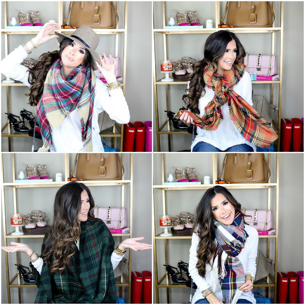 By far one of the most popular accessories this season. So big and cozy, they are literally like a blanket. These are so versatile, with endless ways to tie and wear them. Here is a video showing you all of the ways to tie a blanket scarf by one of my favorite bloggers