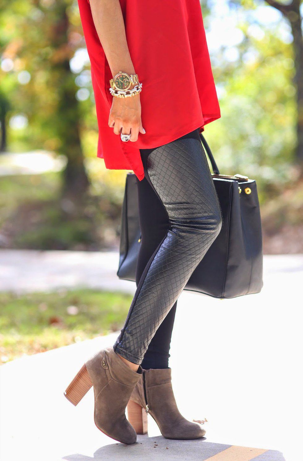 Leather is stylish in any form. Whether it be a skirt, jacket, dress, or pants, leather is a trend worth wearing. Embrace this trend for an edgier vibe.
