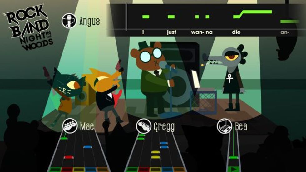 From the Steam slice-of-life/cosmic horror game Night in the Woods comes a band that is only "named" in a blink-and-you’ll-miss-it bit of gag dialogue. Their title may not be particularly substantial, but their music is surprisingly good. The lyrics are not spoken aloud but they are presented in subtitles and they are surprisingly gloomy, plus you get to play through them using little Guitar Hero minigames on your keyboard. Some fans have even taken it upon themselves to cover the music with actual vocals, and it sounds great.