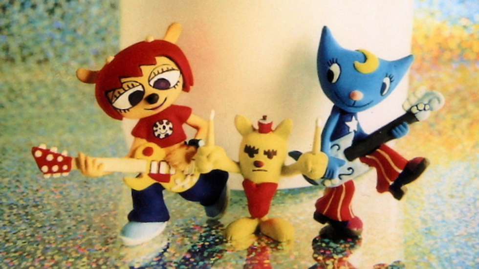 In the PaRappa The Rapper spinoff, Um Jammer Lammy fronts the band MilkCan, which has actually released a full album at this point in real life. Katy Kat sings the lyrics and the album, entitled "Make It Sweet" is a good mix of pop and rock. So in essence, they're kind of like Gorillaz but with cartoon animals that look like paper cut-outs.