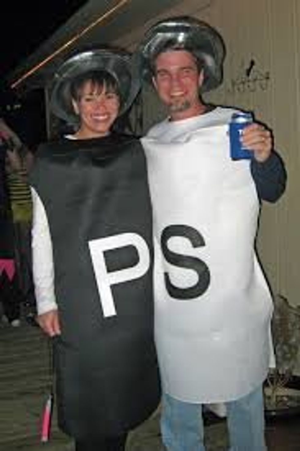 Last but not least, Salt and Pepper! This classic costume never goes out of style and is always a cute and simple idea. This is always a go-to for a cheap costume. If you do not want to go out and buy these costumes, some people have used white and black shirts with cut-outs of an "S" and a "P", and just taped them on to the shirts. This makes this costume option even cheaper! The average cost of this costume: $10-$15.