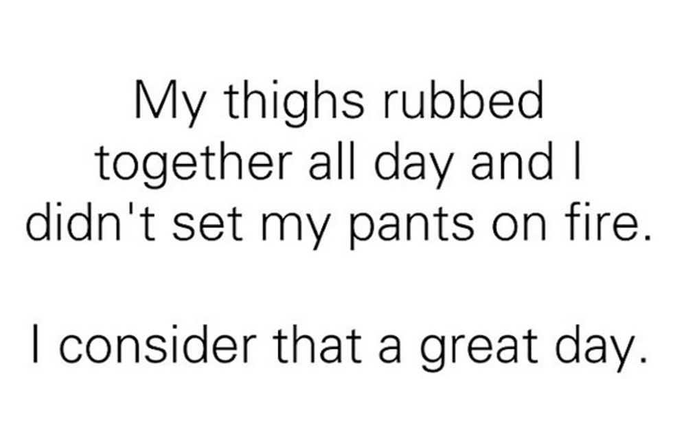 My legs rubbing together is the absolute worse. It's even more fun when my legs rubbing together causes a painful rash. That's just one of the perks of wearing shorts I guess.