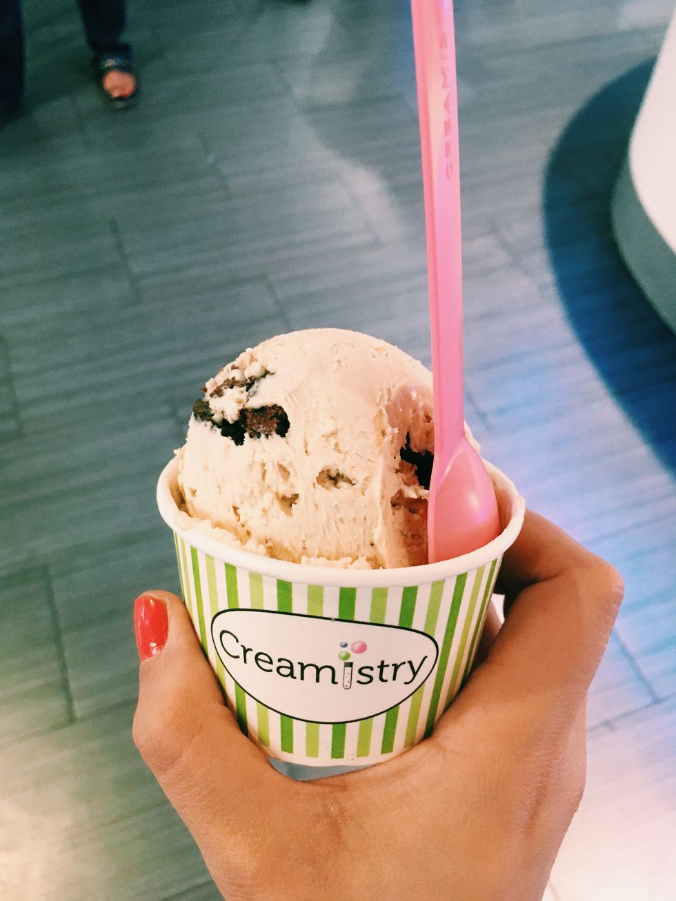 Ice cream is where it's at in the Phoenix area. Creamistry takes a plain or flavored base and then adds your favorite toppings. Seen here is a cake batter base with brownie chunks in it. After they mix up your base they use liquid nitrogen to make the liquid a creamy texture that is perfect for scooping.