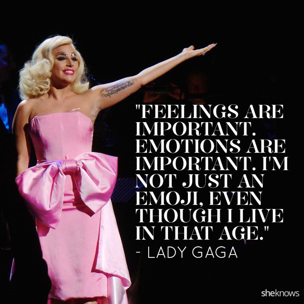 Lady Gaga said she wouldn't do music because she was just there to make money. That is a huge deal considering she probably loves to sing and perform, and because of our society she doesn't want to do what she loves. She has come back to music and brought us great and lyric worthy songs and performances. She is a strong and talented women that inspires people to be how they were born. How they see themselves is who they truly are.