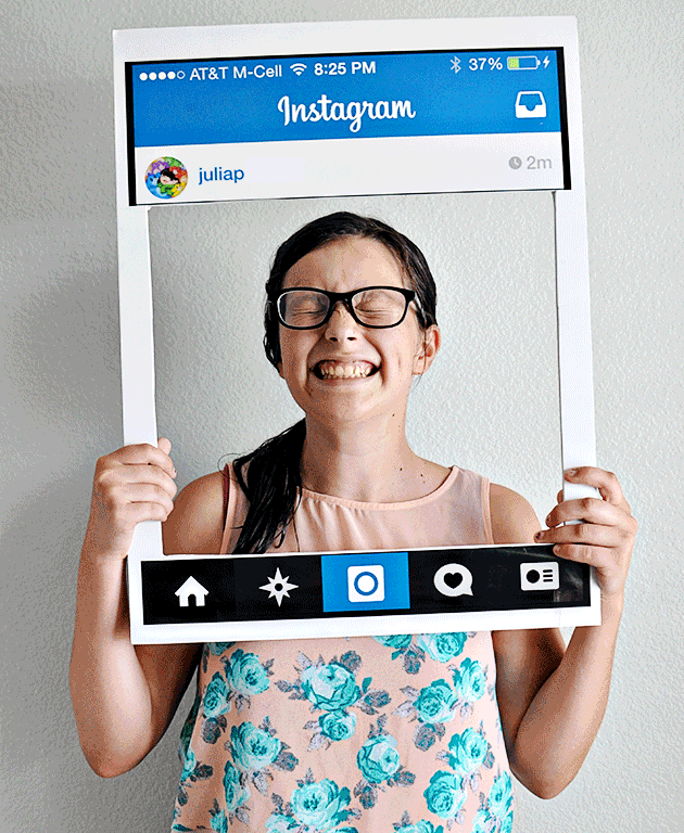- Instagram photo-- If you find yourself scrambling for a costume on the day of trick or treating or that Halloween party, you can always use this quick and easy instragm cutout (http://www.thirtyhandmadedays.com/teen-adult-hallo...) and attach it to a posterboard.