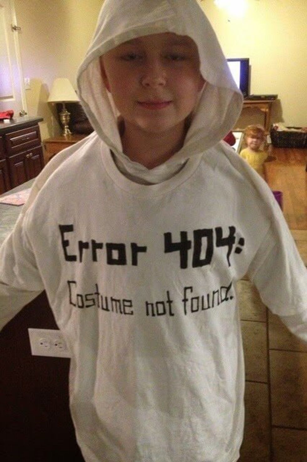 - Error 404… Costume not found-- Are you totally over costumes this year? Make a statement by writing the error message that appears online when a server is down, expect this time say “costume not found.”