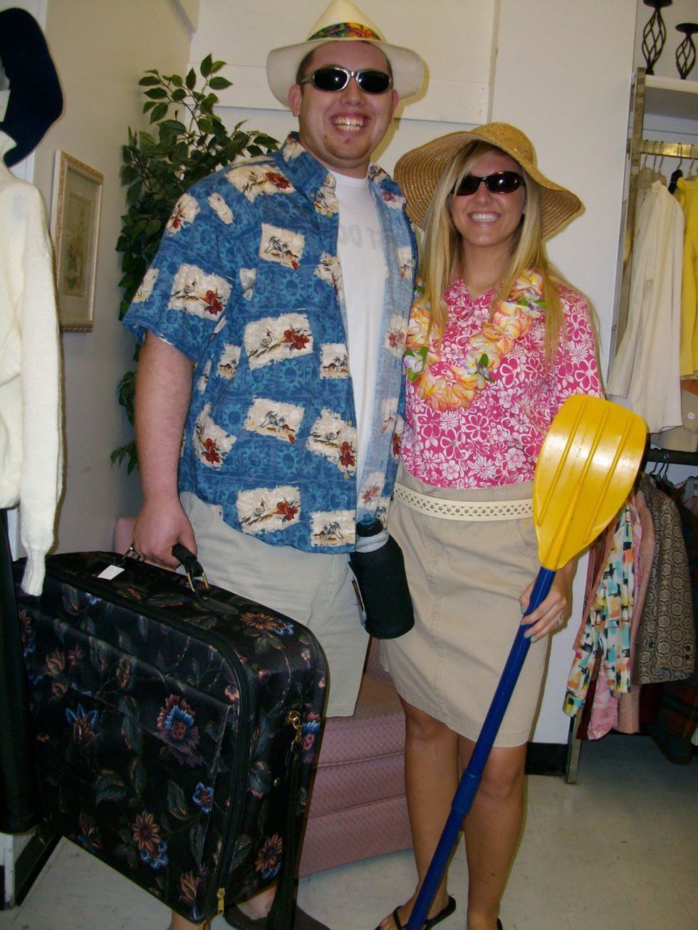 - Tourists-- Grab that Hawaiian shirt you never use and pair it with an old camera, sunglasses, and a fanny pack to turn into an instant tourist.