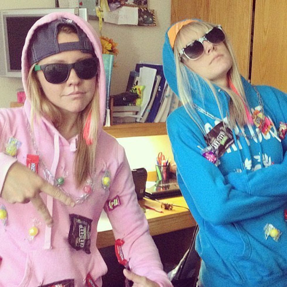 - Candy “Rapper”-- This punny costume involves taping candy on clothes and sunglasses that rappers might wear (sunglasses, loose pants, and white shirts).