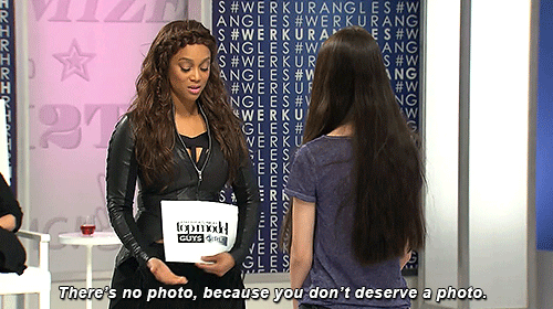 Did you know that you’ve probably been taking selfies wrong your whole life? Don’t feel bad, I didn’t either until Tyra gave the girls’ notes on how to take a stand out selfie which I eagerly took notes on. The tips included #SLAY (So Look At Yourself) where Tyra encouraged the girls to make eye contact with the camera instead of looking away, #CIAO (Crop It All Out) which is removing the phone’s reflection in the picture and, #DipItLow which is the trick of dropping the phone to an attractive angle to get your whole body. Take it from someone who tried it as soon as I finished the episode – they work.
