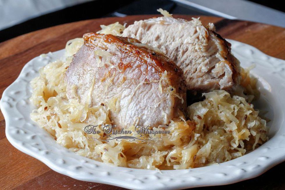 1. Sauerkraut, pork roast, mashed potatoes, and dumplings